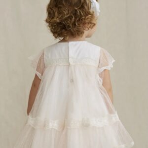 Abel & Lula Girls Dress Peach Tulle Jacquard Lace Trim 1/4 SleeveÂ