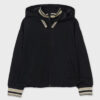 Elegant bermuda shorts with houndstooth. Velvety details. Inner waistband with elastic button fastening for a better fit and outer waistband with button. Invisible zip fastening on the side. Design with pockets. Beautiful velvet belt. Ideal to combine with any garment from our Autumn/Winter collection.