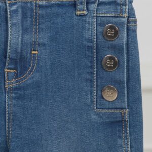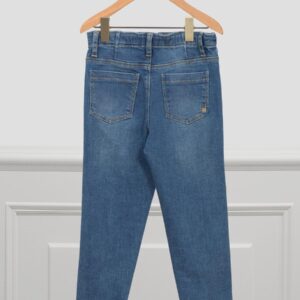 Denim trousers from our slim fit line. Elasticated waistband for a better fit. Decorative simulated pockets on the sides. An ideal garment to combine with the rest of our collection.