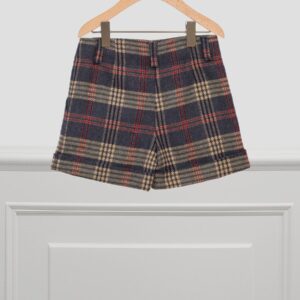Stylish flannel check Bermuda shorts. Inner waistband with elasticated button fastening for a better fit. Button and zip fastening. Design with darts and pockets. Turn-up hem. Ideal to complete any look from our collection.