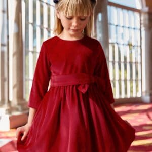 Elegant velvet dress with lining and cancan tulle to give more volume to the skirt. French sleeves. Beautiful cut at the waist with sash. Invisible zip fastening at the back. Ideal for special occasions