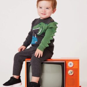 Roar into style with the Infant Charcoal Dino Sweater Set. Featuring a cool dinosaur design, this set is perfect for little ones who love a touch of adventure.