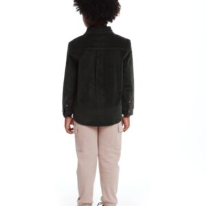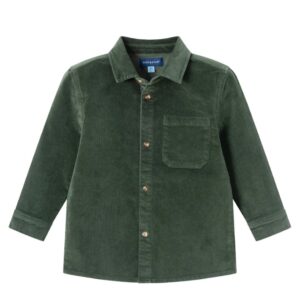 Introducing the Kids Garment Washed Green Cord Buttondown. This classic buttondown shirt features soft corduroy fabric and timeless details, perfect for any casual or smart-casual occasion.