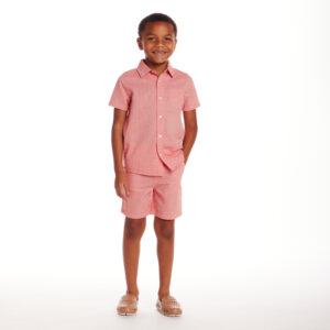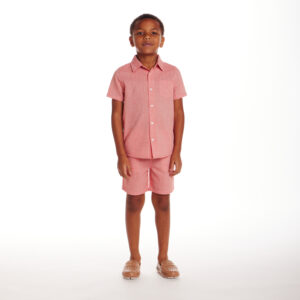 Brighten up your child’s summer wardrobe with this Coral Seersucker Short Sleeve Buttondown and Shorts Set. Ideal for both playful afternoons and family outings, the vibrant coral hue complements the lightweight, textured seersucker fabric, making it a stylish yet comfortable choice for warm weather.