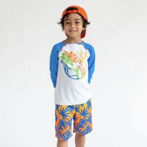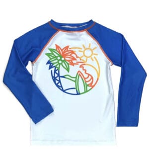 A day at the beach, surfing is a perfect way to spend your summer. Fashionable and practical, swim all day long in our rash guard swimwear that has UPF50.Â
