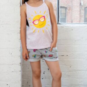 A cute, easy drawstring-waist short that is perfect for summer camp, school, or any occasion this summer. Featured with adorable rainbow hearts.