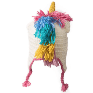 The Appaman Unicorn Baby Hat is a fleece-lined knit cap with ear covers and a unicorn horn.