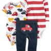 Stock up on five short-sleeve bodysuits, complete with easy over-the-head shoulders and strong snaps at the legs.