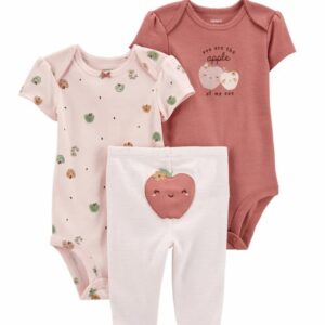 Crafted in soft cotton with three sweet pieces, this set is complete with two short-sleeve bodysuits and a pair of easy-on pants.