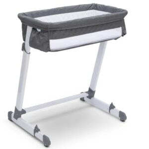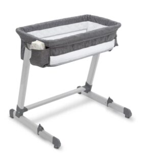 Keep your newborn close with the Beautyrest Deluxe By the Bed Bassinet. The bassinet’s modern z-shaped frame is outfitted with wheels, so you can easily slide the base under your bed to keep Baby nearby, while still giving them a safe, separate sleep space.
