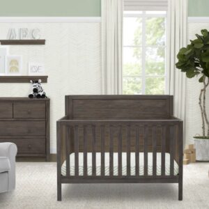The Cambridge 4-in-1 Convertible Baby Crib by Delta Children helps make your baby’s nursery a true expression of your style. This baby crib showcases clean lines and a distressed, textured finish that comes together to create the perfect yin and yang between rugged and refined. A one-of-a-kind option for your little one, the Cambridge 4-in-1 Convertible Baby Crib is designed with a solid headboard that’s accented with shiplap-inspired horizontal planks that instantly brings warmth and character to any baby’s room. A welcome spot for sweet dreams for years to come, this crib allows you to easily lower the mattress support to any of the three height levels to accommodate your child as they begin to sit or stand. And to make sure it’s the only bed your child will need in their lifetime, it easily adapts from a crib to a toddler bed, a daybed, and a full size bed.