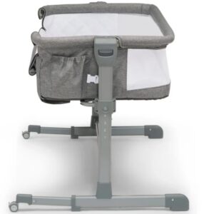 Give your baby a safe and spacious sleep space with the Close2Me Bedside Baby Bassinet by Delta Children. Larger than the average bassinet, it features a convertible design that allows it to be used as a standalone bassinet or as bedside sleeper. When converted into a bedside sleeper, this roomy bassinet provides the closeness and convenience of co-sleeping, while giving your baby their own protected space, plus it makes it easy to soothe and care for your baby, while still in bed. Simply unzip and unroll the side wall of the bassinet and use the included safety straps to securely attach the bassinet to your bed.Â