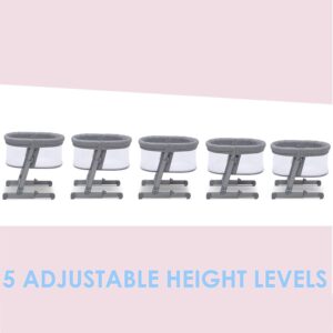 Simmons Kids’ Oval City Sleeper is there for your baby as they grow. This newborn bassinet features five levels of height that allow it to lower or raise the unit as needed. . Tilt the bassinet slightly to engage the wheels that allow you to easily move it from room to room. The removable mattress cover is machine washable for easy cleaning.