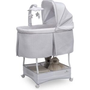 Help ease your baby to sleep with the automatic gliding motion, soothing sounds, spinning star toys, twinkling lights and soft-glow nightlight on the iComfort Auto Gliding Bassinet. Brought to you by Serta, the leader in mattress innovation and technology, this bassinet will make it easier than ever for baby to fall asleep and stay asleep throughout the night.Â