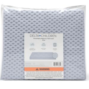 Upgrade your baby’s crib mattress with this Breathable Crib Mattress Pad Cover from Delta Children. Easily turn any mattress into a breathable mattress with this 100% breathable mattress pad that helps maximizes airflow between baby and the mattress for a safer and more comfortable sleep. The pad’s three-dimensional structure allows air to flow through the fabric and under your baby. Designed with elastic edges all around, this pad stretches snugly and securely to fit any mattress, ensuring a perfect fit every time. When accidents occur, simply toss it in the washing machine for effortless cleaning.