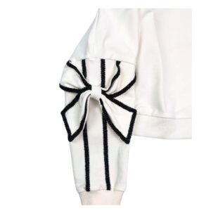 This classic crewneck has a bow with black trim on each sleeve for added elegance! Also available in pink!