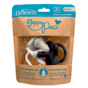 EASY TRANSITION TO PACIFIER. The unique 100% silicone HappyPaci bulb design features the same shape as Dr. Brown’s bottle nipple that’s familiar to baby.
