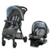 The Graco Verb Travel System gives you a stylish and smooth ride for your child. It includes the SnugRide 30 Infant Car Seat (for babies from 4-30 lb), which connects to the stroller with a secure, one-step attachment. The lightweight stroller has suspension and a locking front-swivel wheel for a smooth ride and a multi-position reclining seat. Plus, there are plenty of convenience features, including parent and child’s tray with cup holders and a large basket.