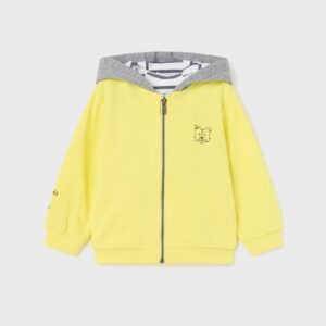 Long sleeve zip hoodie for baby. Hooded design. Side pockets. Patterned design.