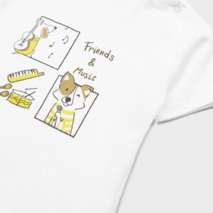Short sleeved T-shirt for baby. Round neckline. Relaxed skater fit silhouette with dropped shoulders and slightly oversized pattern. Made from 100% cotton fabric. Patterned design.