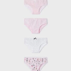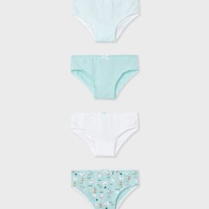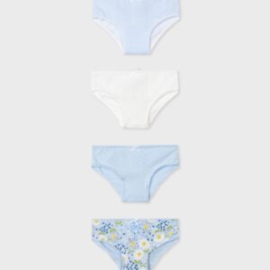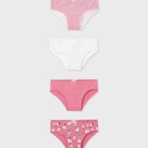 Set of four pairs of knickers for girl. Made from soft elasticated cotton fabric.