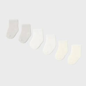 Set of 6 pairs of socks for newborn. This item comes presented in a box from the Newborn collection, ideal to be given as a gift on special occasions.