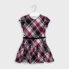 Short sleeved dress for girl aged 2 to 9 years. Round neckline. Opening on the back with an invisible zip. Made from comfortable knitted fabric. Gathered design. Removable velvet belt. Checked pattern.