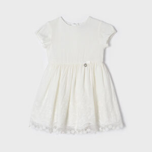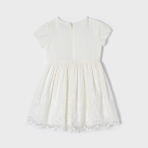 MAYORAL ANTIQUE-WHITE LINEN EMBROIDERED DRESS.