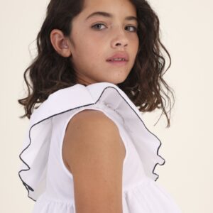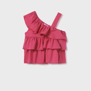 Blouse with braces for girl. Asymmetrical neck. Decorative elements: decorative ruffles.