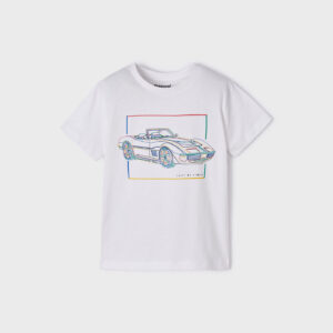 Mayoral Boys T-shirt White Multi Colored Car Outline