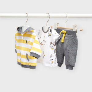 ECOFRIENDS garment, contains sustainable cotton Three piece tracksuit for newborn boy made up of a sweatshirt, jogging bottoms and a matching t-shirt.