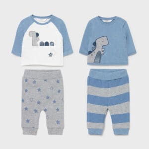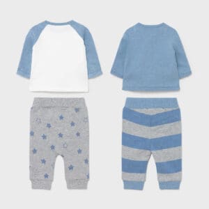 Long sleeved Sweatshirt for Newborn boy to 6-9 months. Round neckline. Snap-button fastening on the back to allow the garment to be put on easily. For increased ease when putting the item on, in the small sizes (from Newborn to 2-4 months) the shoulder fastening is changed to a complete side opening with clasps and a crossover neckline.