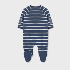 Long sleeved sleepsuit for Newborn boy 0 to 6-9 months. Includes feet. Round neckline. Snap button fastening on the front. Snap-button fastening on the crotch. Striped pattern.
