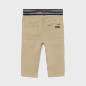 Chino style trousers for Baby boy 6 to 36 months with a skinny, elegant fit. Elasticated waistband with adjustable drawstring. This item has a special tinting which means that its finish may not be uniform or that the colour may vary with the washings.