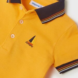Polo shirt with short sleeves, and patch applications, classic dark blue collar, neck closure with buttons. Composition: 99% Cotton 1% Elastane Mayoral