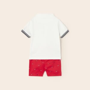 Combined short sleeved polo shirt and bermuda shorts set for baby.