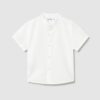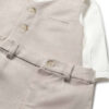 Two-piece suit consisting of a white t-shirt and dungarees in shades of beige, light blue and yellow. Scroll down the page to see the matching products. Newborn Line.
