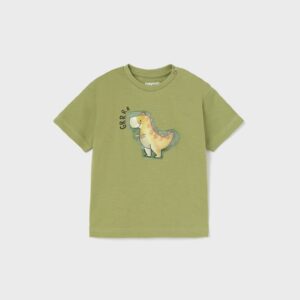 Short sleeved T-shirt for baby. Round neckline. Relaxed skater fit silhouette with dropped shoulders and slightly oversized pattern. Buttons fastenings on the shoulder. Made from 100% cotton fabric. PLAY WITH motif, interactive lenticular.