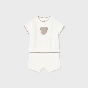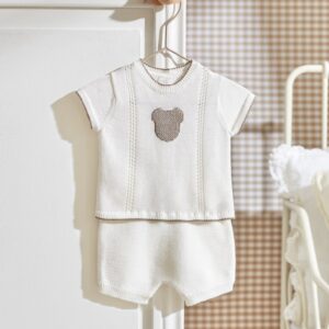 ECOFRIENDS garment, contains sustainable cotton. Original two-piece set for newborn. Made using fine knit fabric that is soft to the touch.