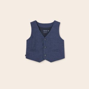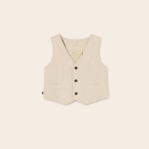 Sleeveless vest for baby. V-neck design. Buttons to fasten. Fresh and contemporary fabric with linen.
