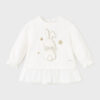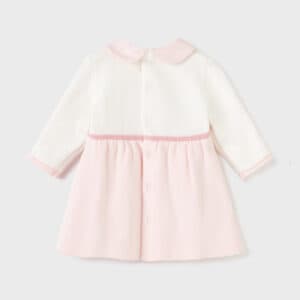 ECOFRIENDS garment 100% organic cotton Long sleeved Dress for Newborn girls 0 to 12 months. Shirt collar. Fitted to the chest. Button fastenings down the back to allow the garment to be put on and taken off easily.