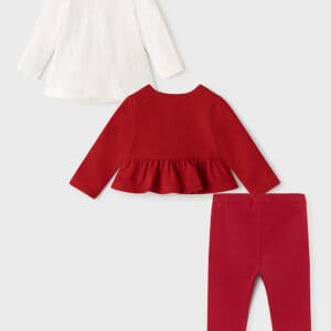 ECOFRIENDS garment, contains sustainable cotton Matching three piece set for Baby girl 6 to 36 months which includes a jacket, a t-shirt and leggings.