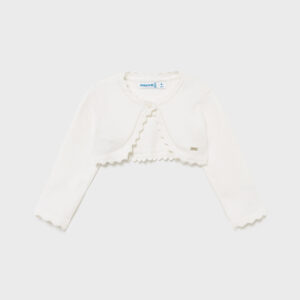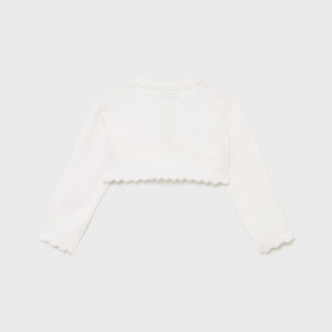 ECOFRIENDS garment, contains sustainable cotton Long sleeved Cardigan for Baby girl 6 to 36 months. Round neckline. Single button fastening on the front neckline.