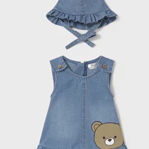 MAYORAL DENIM DRESS AND HAT.