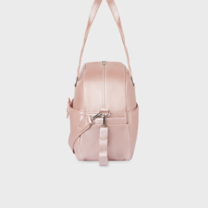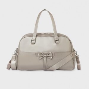 Spacious changing bag used to help you on a daily basis and store everything you need to look after your baby. Zip fastening. Modern leatherette exterior. It includes hand held straps, a shoulder strap and a hanging strap; the last two are detachable allowing you to personalise your look and add your own style. Decorative elements: bow applique. The size dimensions for this item are: 47 cm x 29 cm x 17 cm.