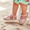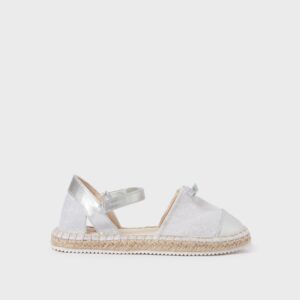 Semi-open ballerina pumps for girls with a feminine and elegant style. Textile outer material. Comfortable combined sole of 100% natural braided jute with non-slip rubber. Adjustable Velcro strap which guarantees a perfect fit.Â