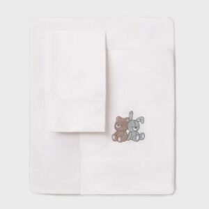 Cotton sheets for babies by Mayoral. These sheets are in a white shade with elastic and have embroidery with teddy bears. Their fabric is soft cotton, ideal for your baby’s sensitive skin.