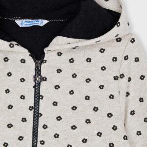Long sleeved Hoodie with elasticated cuffs for Girl 2 to 9 years. Hooded collar. Front, central zip fastening. Polka-dot pattern.