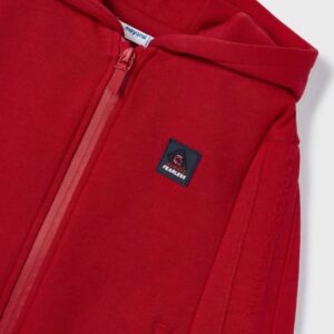 Long sleeve sweatshirt for boy. Collar with hood. Front, central zip fastening. Decorative elements: embossed detail.