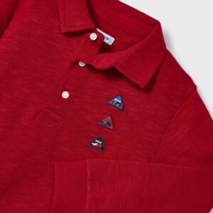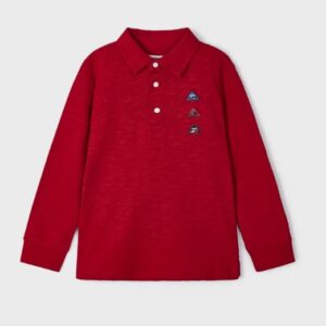 Polo shirt with elasticated cuffs for boy. Classic polo shirt collar. Made from soft elasticated cotton fabric. Decorative elements: decorative appliques.